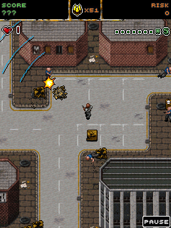 this one goes WAY further than most though. The Club was a third person shooter for PC/PS3/360 which I have never heard of in my life and am now kind of fascinated by, but as far as I can tell, the gameplay is largely conventional 3D shooting action. J2ME The Club on the other hand is a strange twist on a rail shooter: stages are played in top-down perspective, and at first you might think it's a Hotline Miamilike, but you have no direct character control! your boy moves on a predetermined path, and you can control how fast or slow he goes, and you can rotate his torso; that's it, otherwise you're just along for the ride.