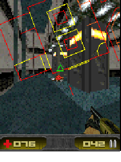 what's interesting about this game is that it's doom for a platform that is capable of far more than doom. hell, J2ME has Doom RPG, which is in some ways considerably more complex than the original game! (it's also good, play it.) but really, J2ME phones are capable of playstation-grade polygonal graphics at 30fps, there is no need to make Doom for Flip Phones, and yet that seems to be what's happened here. i'm pretty sure this is a raycasting engine and there are several indications that it's either derived from doom or was written as an exercise in reimplementing the doom engine from scratch. check out the minimap; you don't do that by accident.