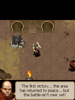 unlike shrek, which is basically a typical GBA license title (if perhaps a little simplified) this is definitely a mobile-first design. unlike diablo's open world, Devils And Demons takes place in a series of small stages. they're made to look like part of a contiguous larger world, but each one is basically a little arena with a simple goal: get to a particular spot without dying, kill a certain number of enemies, defend a control point, etc. it is absolutely the kind of bite-sized entertainment you want when you're waiting for a bus that could take five to twenty minutes to arrive, you hadn't intended to be out long enough to bring a more serious entertainment device, and mobile internet is in its infancy so you can't just stare at a website.