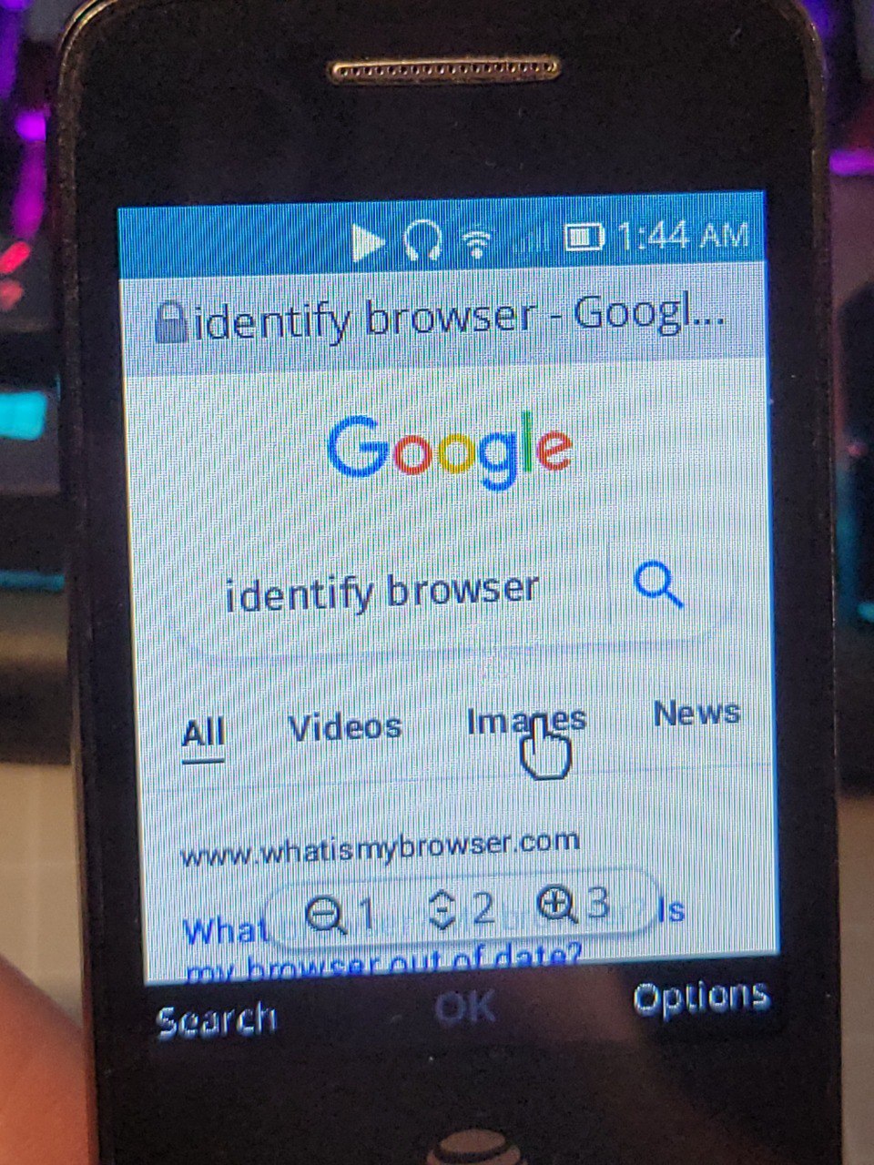 one feature that makes sense but is extremely weird to see in a flip phone is wifi. it works just fine, and why wouldn't it? the phone has a snapdragon 210, i'm sure those have built in wifi. in fact, it just makes it even weirder that the ZTE android flip phone didn't have it, though i'm not 100% sure which SoC is in that. consequently though, i was able to easily verify which browser it's using: