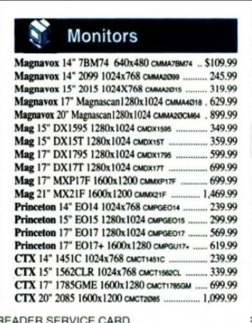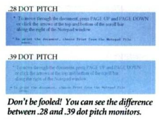 the cheapest monitor in that '96 listing was $240, but i suspect prices were lower in bundles, because i flipped through a PC Magazine from mid 92 and not a single computer was being sold with a display that delivered less than that. now, this could be cheating - again, maybe the dot pitch was so bad that you couldn't actually make anything out at that res, but i'm not sure. virtually everything i can find claims a 0.28mm dot pitch, which a quick google suggests is pretty decent. one 1992 monitor ad even Calls Out displays with .39 dot pitch, so i kinda suspect these are the genuine article.