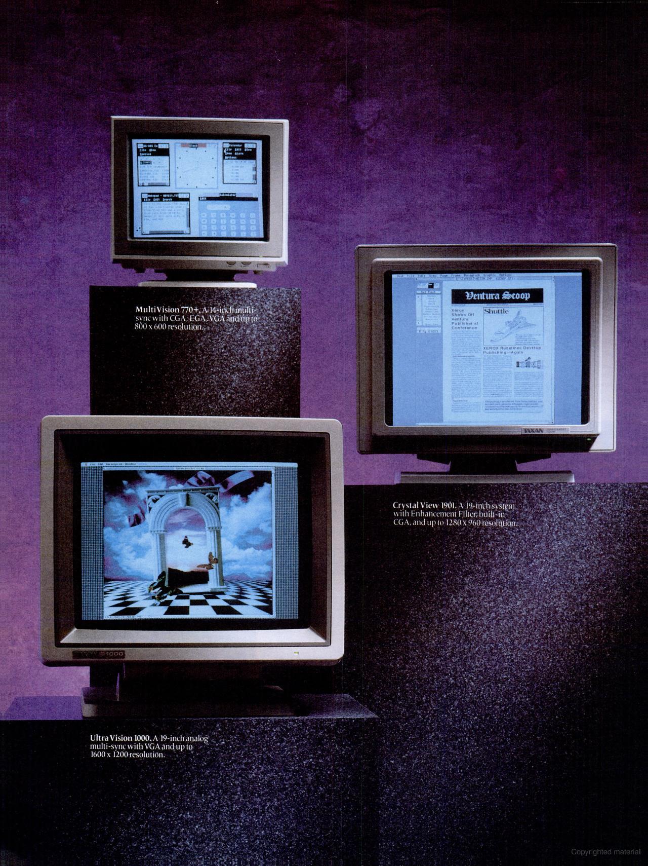 this first pic is a magazine ad from 1988 advertising, among other things, a 19”, 1600×1200 display. i have never seen one of these in person but i have no doubt they looked just fine. so this was doable - if you had the rupees. obviously these were stupid expensive and meant entirely for people running CAD and desktop publishing. but they did exist!