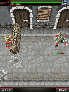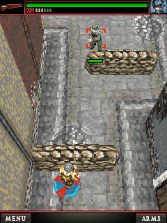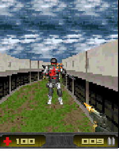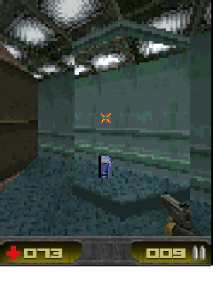 what's interesting about this game is that it's doom for a platform that is capable of far more than doom. hell, J2ME has Doom RPG, which is in some ways considerably more complex than the original game! (it's also good, play it.) but really, J2ME phones are capable of playstation-grade polygonal graphics at 30fps, there is no need to make Doom for Flip Phones, and yet that seems to be what's happened here. i'm pretty sure this is a raycasting engine and there are several indications that it's either derived from doom or was written as an exercise in reimplementing the doom engine from scratch. check out the minimap; you don't do that by accident.