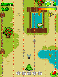 Frogger: Beats 'n Bounces puts the titular green man on a five-lane vertical track, traveling upwards one hop at a time, to the beat of a MIDI soundtrack (more on this later.) on every beat, you can choose to move to an adjoining track, or zap a bug with Frogger's tongue. that's it, as far as i've seen; a simple, all-ages rhythm game that anyone could enjoy. and i think you would choose to enjoy this, if you tried it - the art is pleasant, the levels are surprisingly long, and while it's no Crypt of the Necrodancer, once again you would not want to get that deep into a game while waiting for a bus. the one criticism i have is that sometimes you can't tell if things are going to hurt you, and some of the things that do hurt you seem… surprising.
