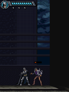 released in 2008 to coincide with the film, this is a really good Batman game. the artwork is phenomenal, the world is dark, batman's dialogue is excellent (“i can't tell you, you don't know what the boss will do to me!” “think about what i'll do to you” is solid stuff) and mechanically it's fantastic. emulator says the framerate is 26fps; i think it's probably double-buffered and really running at 13, but it doesn't matter. once again, motion is fantastic, the multilayer parallax scrolling makes the city look enormous, and the background art is terrific. as i write this, i'm watching trains pass by in different directions on three different background layers. great, great stuff.