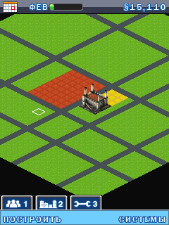 regardless, the UI is kind of a masterpiece. in an interesting departure from most J2ME games, movement is only possible on the D-pad, because the entire dialpad is shortcuts! you get to the build menu with a softkey, the other takes you to tax rates and other behind the scenes stuff, but numbers 1,2,3 take you to demand meters, 4,5,6 adjust simulation speed… i can't remember what the others do, but it's all designed for maximum efficiency, and it works. this is exactly as much simcity as you'd like to play while waiting for a bus.